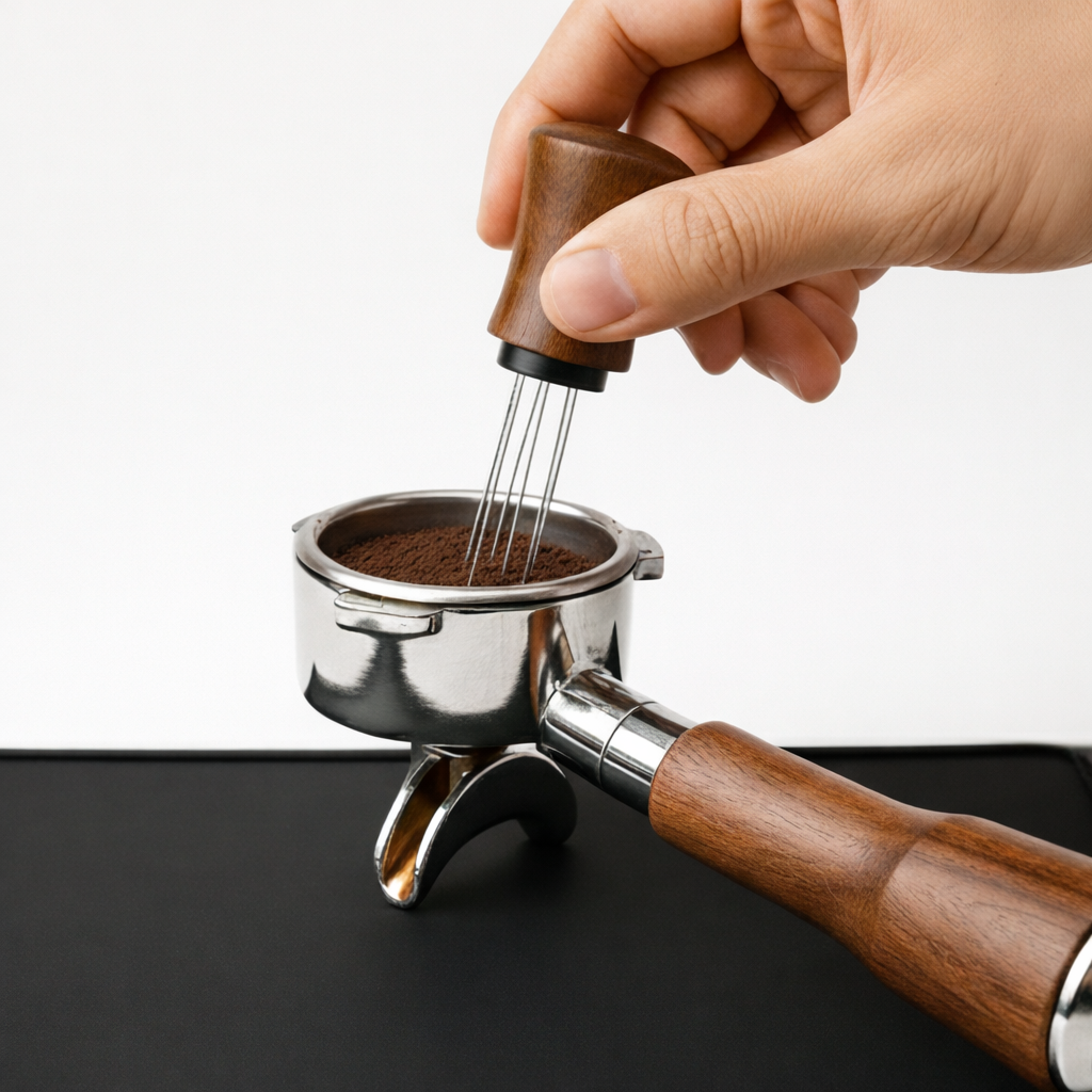 Your Solution: Features ultra-fine 0.3mm stainless steel needles. Unlike thicker tools that just push coffee around, this efficiently breaks clumps for a fluffy, even bed.