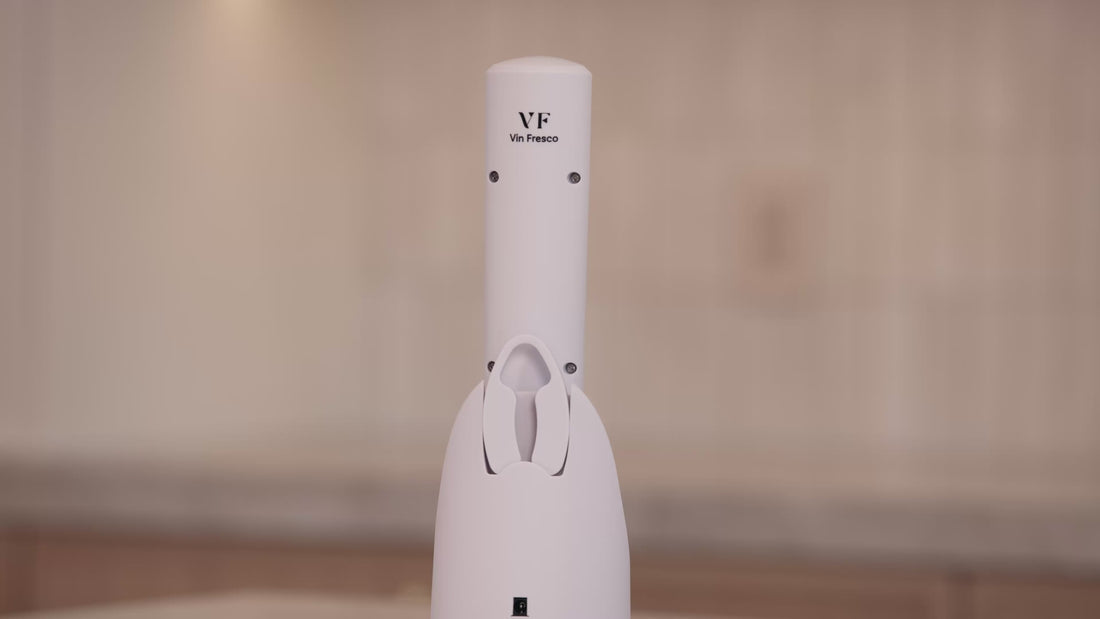 The Rechargeable model features a sleek charging base and a modern stainless steel finish. The transparent shell lights up with a soft blue LED, letting you see the cork extraction in action. Perfect for the modern kitchen.