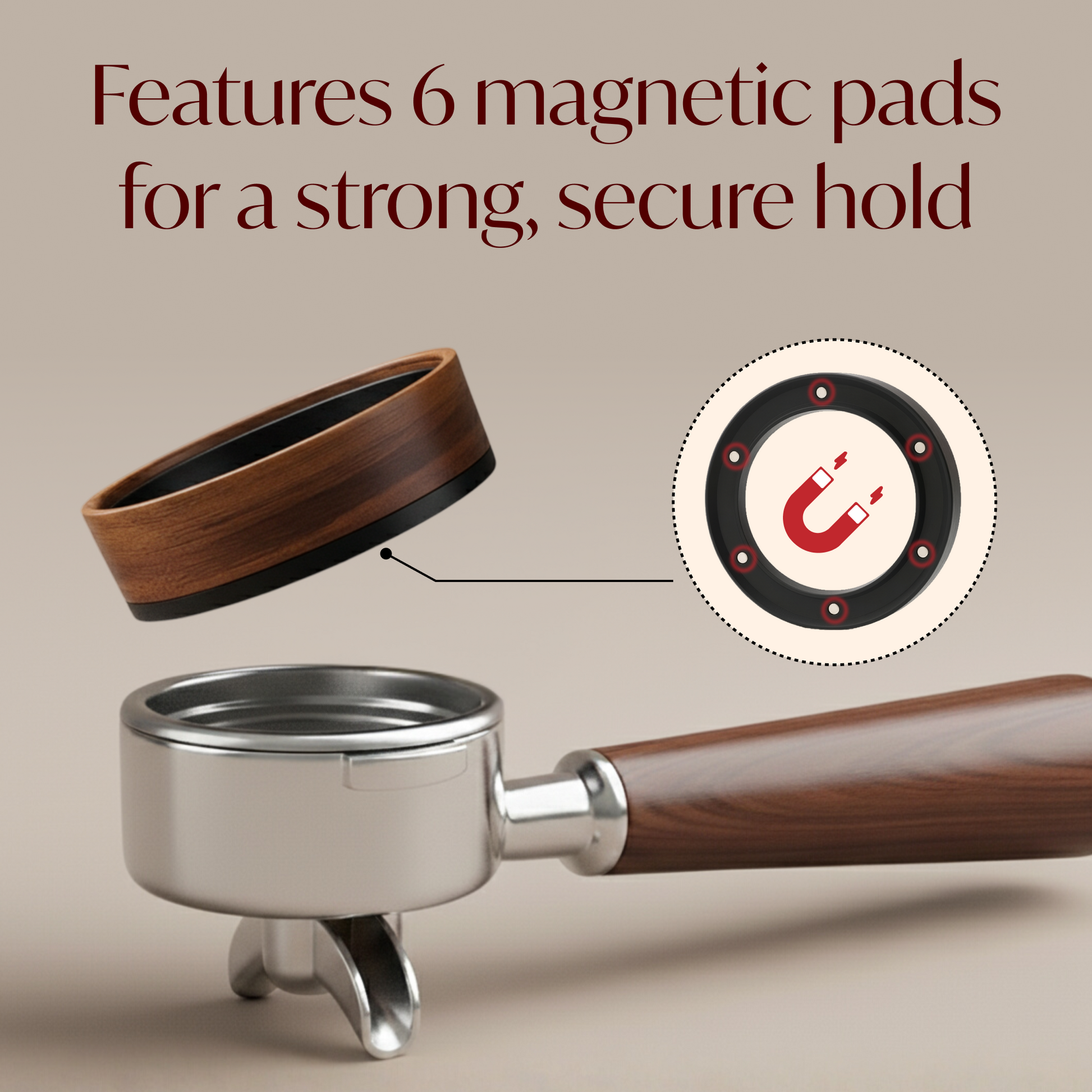 ✅ Magnetic & Secure Fit – 6 built-in magnetic pads hold the funnel firmly on most 54mm portafilters for stable filling and distribution.