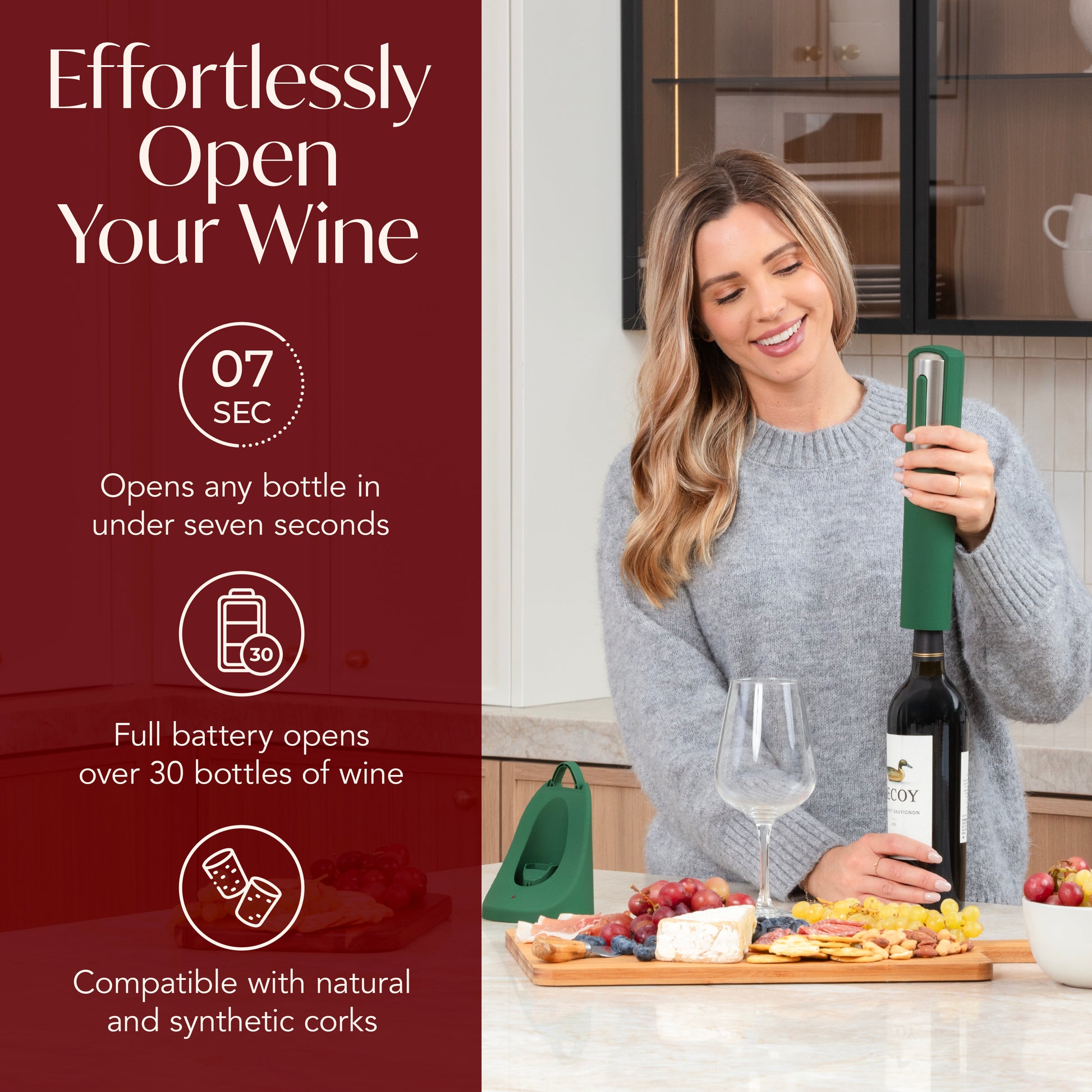 ✅ Opens bottles with synthetic and natural corks