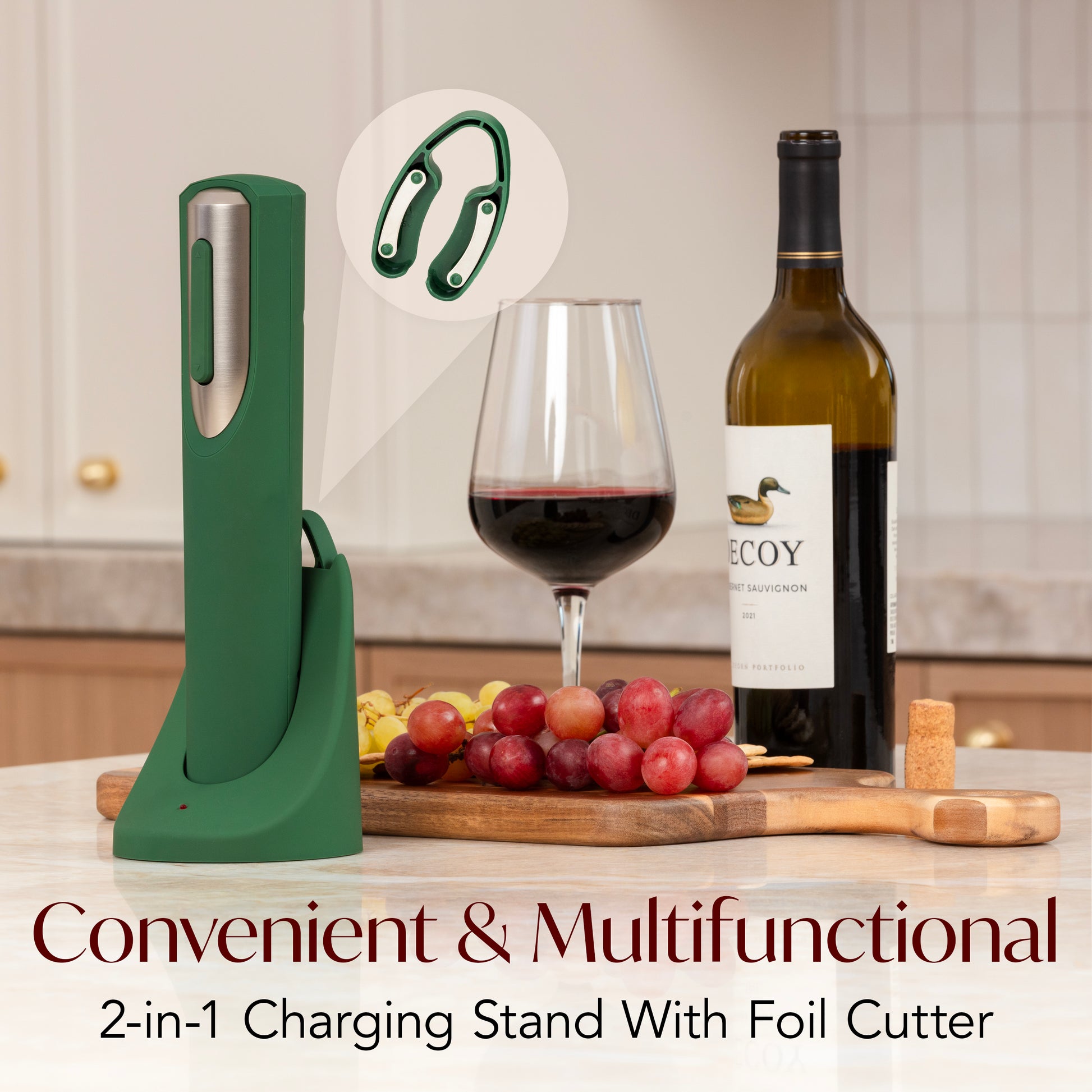 Rechargeable Electric Wine Bottle Opener with Charging Base & Foil Cutter
